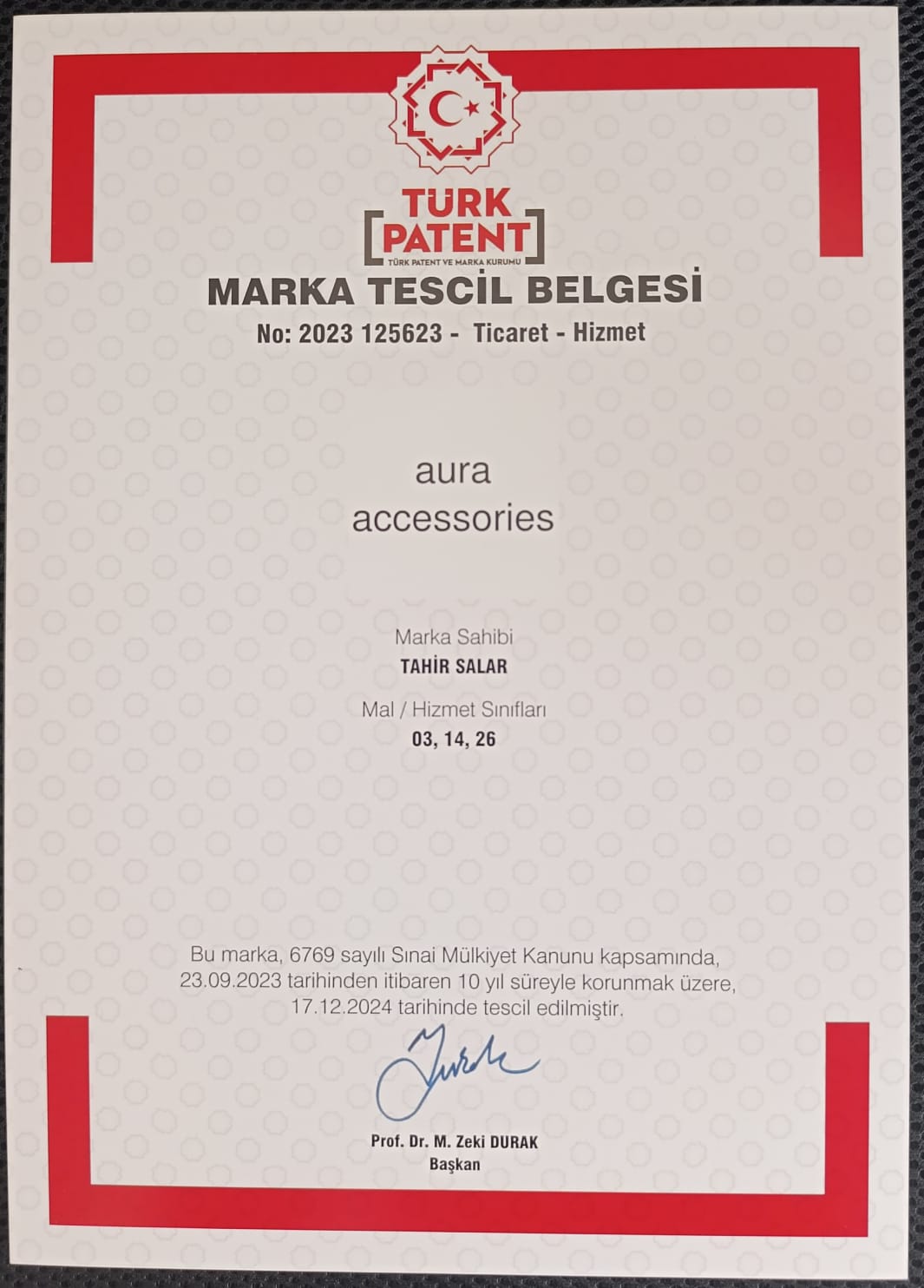 Aura Aksesuar, Türk Patent ve Marka Kurumu tarafından tescillenmiş, ADS Aksesuar’a ait bir markadır.